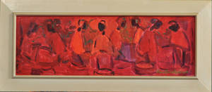 Figurkomposition af Poul Christensson (1909-2004), olie på plade, sign. Poul Christensson, 48x98 cm. (70x119,5 cm). Läs mer...