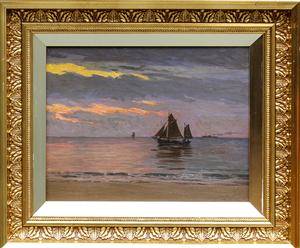 Fritz Kraul 1862 - 1935. Olie på plade. Marine, signeret. H.27 x 34 cm (42 x 50 cm)