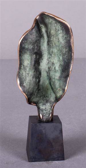 Carsten Fun Jensen f. 1954. Abstrakt skulptur i bronze på sokkel af sten. Usigneret. På undersiden betegnet: Nr. 5 Den mindste skulptur H. 21 cm Läs mer...