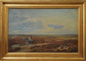 Hedeparti af Olüf Jensen, olie på lærred, sign. Olüf Jensen, 37x58 cm. (50x71 cm).