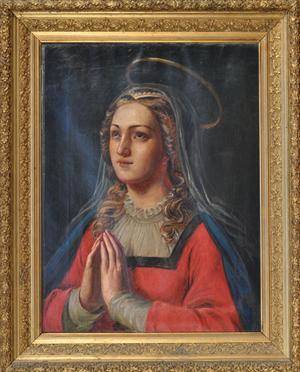 Avslutade auktioner liknande Ubekendt maler, 1800-tallet. Portræt af helgeninde. Olie på lærred