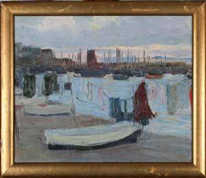 Olie på lærred, 92 x 73 cm. Sign. utydeligt J. Qon...Fransk mærkat på blændramme (ramme med fugtskade) Läs mer...