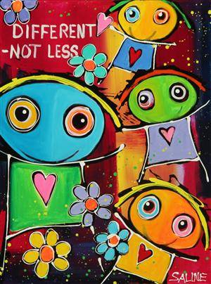 'Different - not less' af Saline (2000-tallet). Akryl på lærred. Sign. Saline. 80 x 60 cm. Uden ramme.