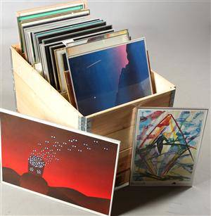 Stor samling grafik, tryk, plakater, akvarel m.m. bla. Åge Fredslund Andersen, Tage Stentoft, Knud Hvidberg & Lennart Ason, kompositioner, landskaber m.m. Div. str. Fremstår med Läs mer...
