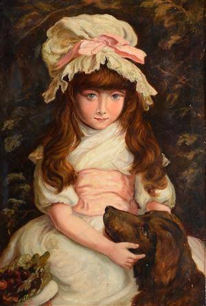 Portræt af en pige, ubekendt kunstner. Olie på lærred, sign. A.B. 1892. 69 x 47 cm. Fremstår med revne i lærred øverst tv. ca. 3 cm.