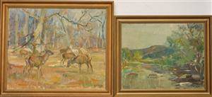 Landskab og Dyrehaven. To olie på lærred. (2)