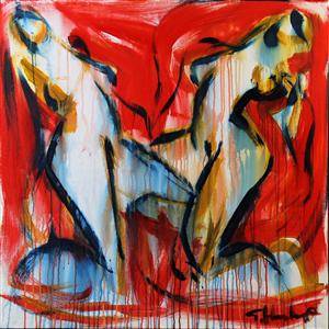 Göran Hausenkamp (född 1962). Akryl på lærred. Figurkomposition, kvinder i bevægelse. Mål.150 x 110. (UR) (cd) Läs mer...