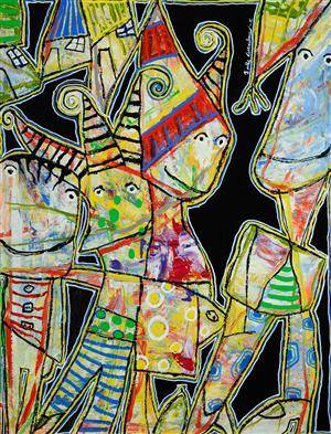 Dorthe Falkenberg, akryl på lærred, 'Venner'