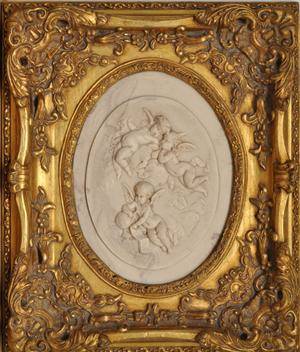 Léon Bertaux, indrammet reliefplade i marmor med puttidekor