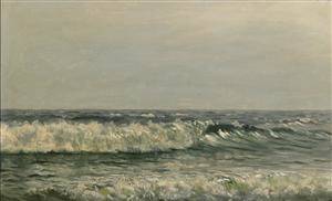 Bølgestudie af Johannes Herman Brandt 1850-1926. Olie på lærred, sign. I.H. Brandt 1924. 28 x 43 (40 x 56) cm.