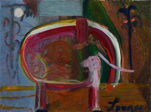 Olie på lærred. 125 x 104 cm, usign. u/r (fugtskadet) Läs mer...
