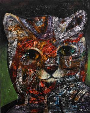 Michael Qvarsebo, f. 1945. Olja på duk, Imaginärt kattporträtt'. Signerad och daterad 2014. 100 x 81 cm.