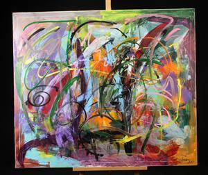 Peter Larsen 20årh. Akryl og spray på lærred. Abstrakt komposition. Betitlet Storbyjunglen. Sign. Peter Larsen samt dateret 2017. 140 x 100 cm, uindrammet Läs mer...