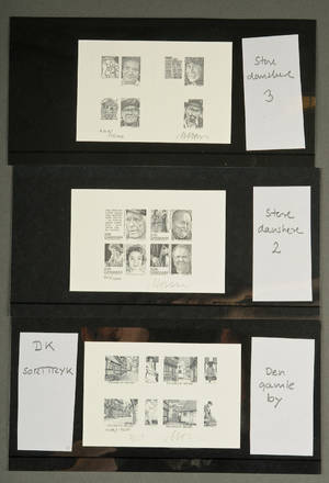Danmark. 3 sorttryk. Kendte danskere nr. 2 og 3, Den gamle by 1909 - 2009. Hvert sorttryk er i begrænset oplag på 1500 stk.