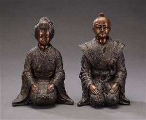 Par japanske skulpturer i bronce i form af mand og kvinde H. 28-30 cm. (2)