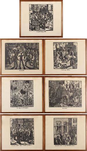 Avslutade auktioner liknande Ubekendt kunstner, linoleumssnit, besættelsesmotiver (9)