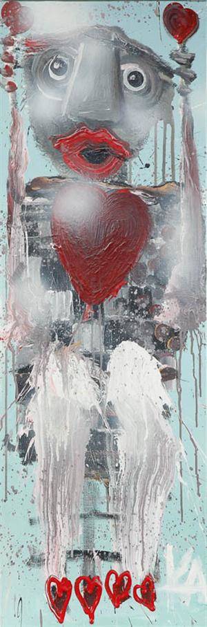 Figurkomposition, Kjeld Appel 1960-2013. Olie på lærred, sign. KA. 120 x 40 cm.