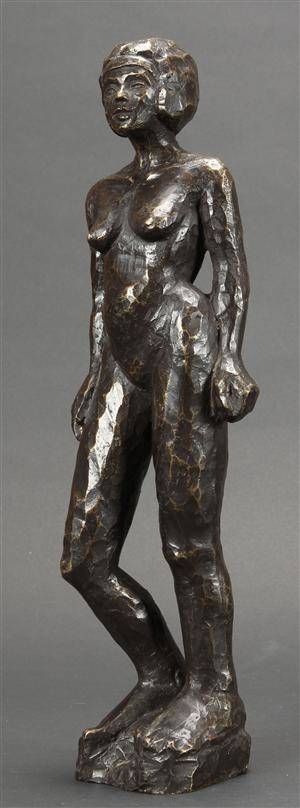 Ubekendt kunstner. Stående kvinde. Figur af patineret bronze.