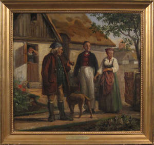 Wilhelm Marstrand. Kjæresten præsenteres. Olie på lærred. Usign. 45 x 49 cm (53 x 57). Fremstår dubleret.
