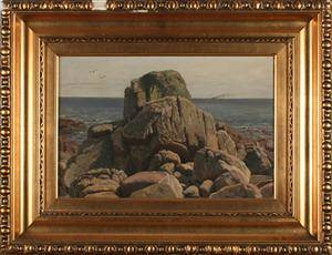 Kystparti med klipper af Johannes Herman Brandt (1850-1926), olie på lærred. Sign. I.H.B. 29 x 42 cm (50 x 63).