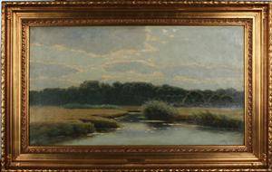 Åløb af Albert Wang (1864-1930), olie på lærred, signeret. 43 x 76 cm. (59 x 90 cm.)