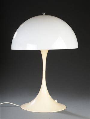 Verner Panton, bordslampa, "Panthella", Louis Poulsen. Vit akryl. Etikettmärkt "Louis Poulsen 123430 Made in Denmark". Skärmens diameter 51 cm. Höjd 70 cm. Obetydligt ytslitage. Ej Läs mer...