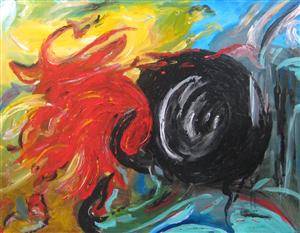Heinz Grüll, Acryl-Ölgemälde, 'Feuerreifen'