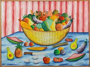 Edouard Gerard, 20. årh. Opstilling med frugter. Sign. Edouard Yves Jh. Gerard 2/12/82. Olie på lærred. 76 x 101 (78 x 103) cm.