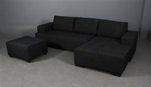 Dansk design. Stor sofa bestående af tre moduler, med chaiselong samt puf. HØJREVENDT Stående på mørke træben. Komposition: Fast sæde med 35kg 160 neuton på nozagfjedre, hynder med granulat og fibervat. Polstret med kraftigt møbelstof i farven "sort". Mål: H. 82 B. 285 D. 84-150 cm. Chaiselong B. 105 D. 150 cm. Puf H. 40 B. 75 D. 70 cm. Siddehøjden er 40 cm. Fremstillet i EU. Leveres i original emballage, 2 colli. Modelfoto. Nyproducerede varer vurderes efter nyvareprincippet. Det betyder, at vurderingen plus købersalær svarer til den vejledende udsalgspris eller til hvad varen vil koste i en butik. Se mere her.