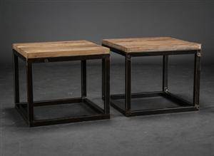 To sideborde af ca. 200 år gammelt rustikt elmetræ, oprindeligt kinesiske døre. Behandlet med lugtfri bivoks. Monteret på håndlavet jernstel. Mål L. 50 cm B. 50 cm H 50. Møbler lavet i genbrugstræ har hver især deres eget unikke udtryk. Hvert møbel er unikt og variationer samt tørrerevner i træstrukturen kan forekomme. (2) Nyproducerede varer vurderes efter nyvareprincippet. Det betyder, at vurderingen plus købersalær svarer til den vejledende udsalgspris eller til hvad varen vil koste i en butik. Se mere her.