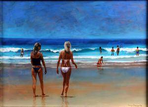 Gerry Dinnage. Kvinder ved strandkant. Akryl på lærred