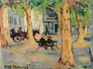 Ubekendt Kunstner: Komposition med personer, olie ...