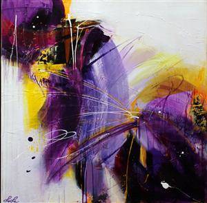 Lene Lemaitre født 1948. Komposition, betitlet "Purple Rain", akryl på lærred. Sign.Le Le. samt sign. og dateret på bagside L. Lemaitre 14. 80 x 80 cm. Uindrammet.