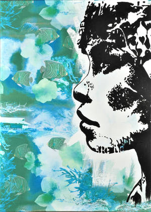 Cecilia Björk, akryl på duk. Signerad. 70x50cm. Cecilia Björk, f. 1971, är utbildad på London Collage of Fashion inom modedesign och konst. I London var hon verksam som stylist, designer och illustratör åt flera London-baserade designers. Bl.a. har C. samarbetat med Marjan Pejoski som designat musikern Björks Oscarskreation, 'the Swandress'. Sedan 2004 är C. bosatt och verksam i Helsingborg.