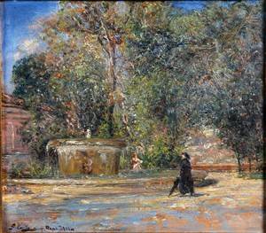 Carl Schlichting-Carlsen 1852-1903. Parkmotiv med personer. Olie på pap. Signeret. Dateret 1901. 20 x 23 ( 36 x 39 ) cm.