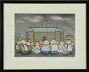 Jacob Gadd født 1961. 'Hyldest til vores Demokrati'. Giclée-kunsttryk. Sign. og nummereret i bly Gadd, 12/75. Lysmål 39 x 29 cm. (Rammemål 52 x 42)