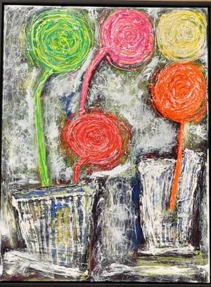 Elin Westergaard (født 1951). Blomster i vase. Akryl på lærred. Sign. Elin W. 80 x 80 (84 x 84) cm. Läs mer...
