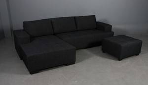 Dansk design. Stor sofa bestående af tre moduler, med venstrevendt chaiselong samt puf. Stående på mørke træben. Komposition: Fast sæde med 35kg 160 neuton på nozagfjedre, Hynder med granulat og fibervat. Polstret med kraftigt møbelstof, i farven sort. Mål: H. 82 B. 285 D. 84-150 cm. Chaiselong B. 105 D. 150 cm. Puf H. 40 B. 75 D. 70 cm. Siddehøjden er 40 cm. Fremstillet i EU. Leveres i original emballage, 2 colli. Modelfoto. Nyproducerede varer vurderes efter nyvareprincippet. Det betyder, at vurderingen plus købersalær svarer til den vejledende udsalgspris eller til hvad varen vil koste i en butik. Se mere her.