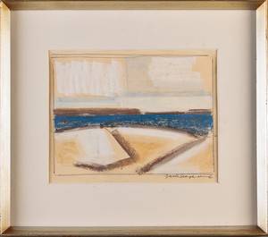Jack Kampmann 1914-1989 cd. Oliekridt på papir. Landskab, signeret. H.19 x 26 cm (37 x 42 cm)
