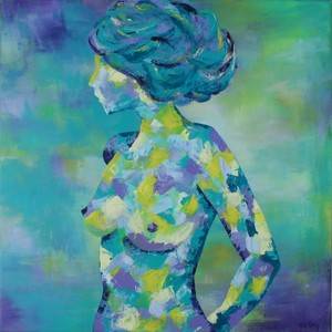 Kvinde af Helle Søberg, akryl på lærred. Sign. Helle Søberg. 80 x 80 cm. U.R.