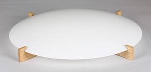 Plafond / taklampa "Plafo" formgiven av Uno och Östen Kristiansson för Luxus, 1900-tal. Stomme av vitmålad ek. Kupa av plast. Fyra ljuspunkter. Diameter: 70 cm Läs mer...