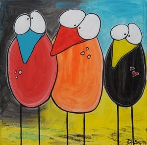 Pia Birgitte Stenderup, f. 1968. Komposition med fugle. Sign. Pia Birgitte. Akryl på lærred. 60 x 60 (62 x 62) cm. Läs mer...