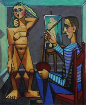 Maler og model i atelieret af Ole Otto Ernst (f. 1949), olie på lærred. Sign. OOErnst. 100 x 120 cm. Uden ramme. Ole Otto Ernst Läs mer...