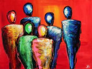 Saline Døg (2000-tallet). Figurkomposition, akryl på lærred, sign. monogram. 100 x 100 cm. Uden ramme. Läs mer...