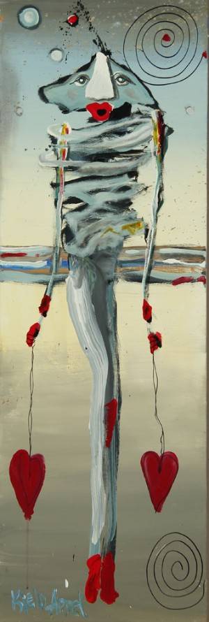 Komposition med figur af Kjeld Appel (1960-2013), akryl på lærred, sign. Kjeld Appel. 120 x 40 cm. Uden ramme. Läs mer...
