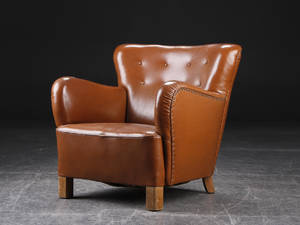 Lænestol, poleret træ og læder. Dansk møbeldesign 1930-1940