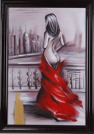 Ubekendt Kunstner, 21. årh. Kvindeportræt, olie på lærred, uden sign. 160x120 cm. (168x128 cm). Enkelte buler i lærred. Läs mer...