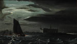 Ubekendt kunstner. Marine, olie på pap, 1800-tallets slutning