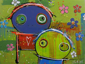 Saline. Figurkomposition, Happiness is not about getting what we want...its about appreciating what we have, akryl på lærred. Sign. Saline. 100 x 100 cm. Läs mer...