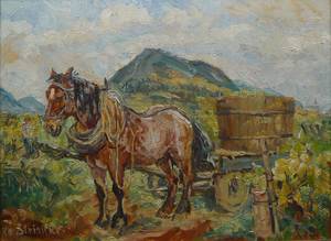 Marie Strieffler, Landschaftsmalerei 'Bei der Ernte'